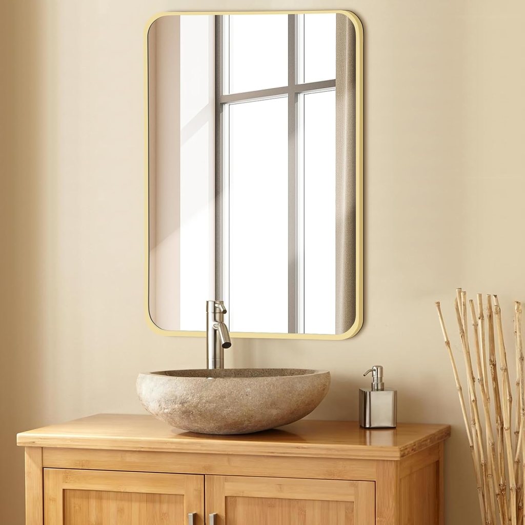 - Elegant & Modern Design: Featuring HD glass encased in ultra-thin metal edges with a minimal 1/12″ gap, our gold rectangle bathroom mirror enhances any space with its sophisticated look.